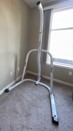 Everlast Single-Station Heavy Bag Stand might be just right for you. Exercises with this unit can improve endurance, strength, agility, speed, hand-eye coordination and much more. It's an optimal choice for boxers and kick boxers looking to workout at home. This Everlast heavy bag stand is also suitable for some multi-user gymnasium environments. It's a compact solution for home fitness, micro gyms and other smaller spaces. Move this punching bag stand with ease wherever you need to put it. The sturdy three weight plate pegs offer a versatile solution for adding any necessary counterweight stability. You can supplement more weights to the base as needed. This product is made from high-quality steel tubing for strength and reliable use. The powder coating on the frame creates an attractive finish while providing scratch-resistant resilience. You can even use it outdoors.