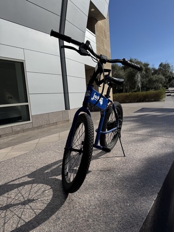 Bought this a few years ago for getting around on campus. Perfect for short distances. Small / compact bike that has quick release handlebars and folding foot pegs, if you want to lay it down flat in a car trunk, or tuck away in dorm etc. They don’t make this exact model anymore, super fun and handy.