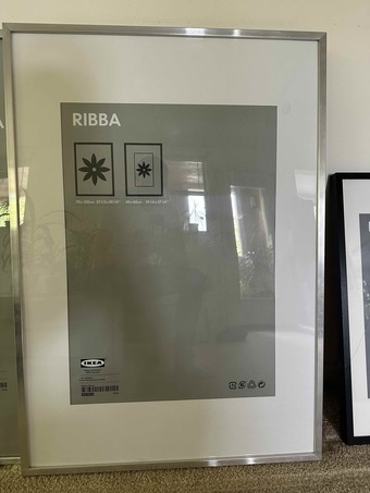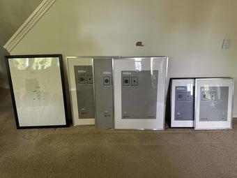 Multiple IKEA RIBBA frames (white, silver, and black)