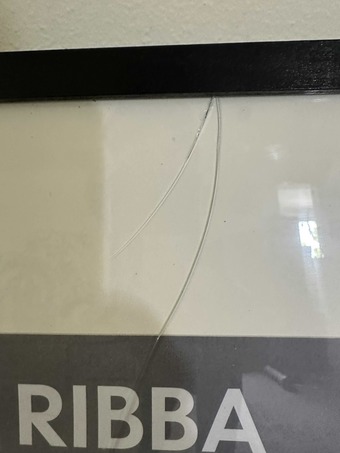 One black RIBBA frame has a crack in the glass (see close-up photo) – glass can likely be replaced or used as-is for certain prints
