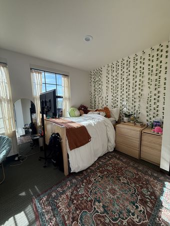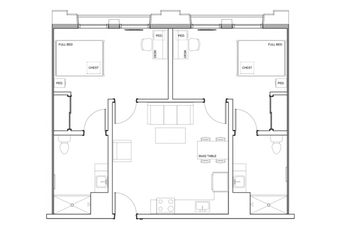 You will have access to a large bedroom and large private bathroom with a shared kitchen space. The space will be shared with a female PhD student, so requests from female affiliates are preferred. Actual bedroom image is shown along with the floor plan from the Stanford website. EVGR comes with lots of amenities include shared community rooms, computer clusters, in-building laundry, fitness rooms, and wellness rooms.