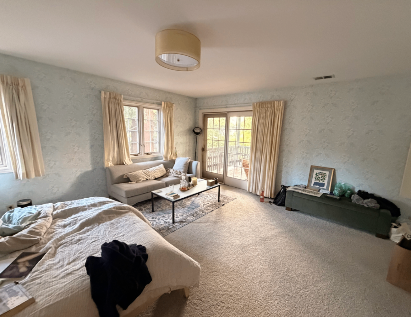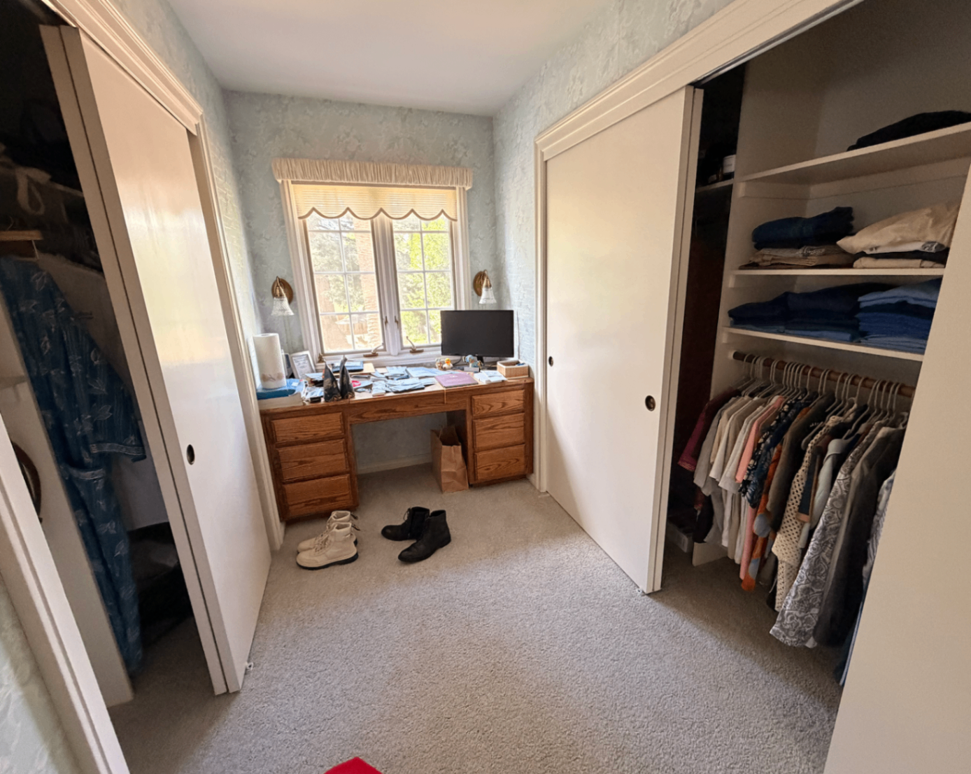 Very spacious master bedroom with en suite bathroom, balcony, massive closets, and office space with built-in desk