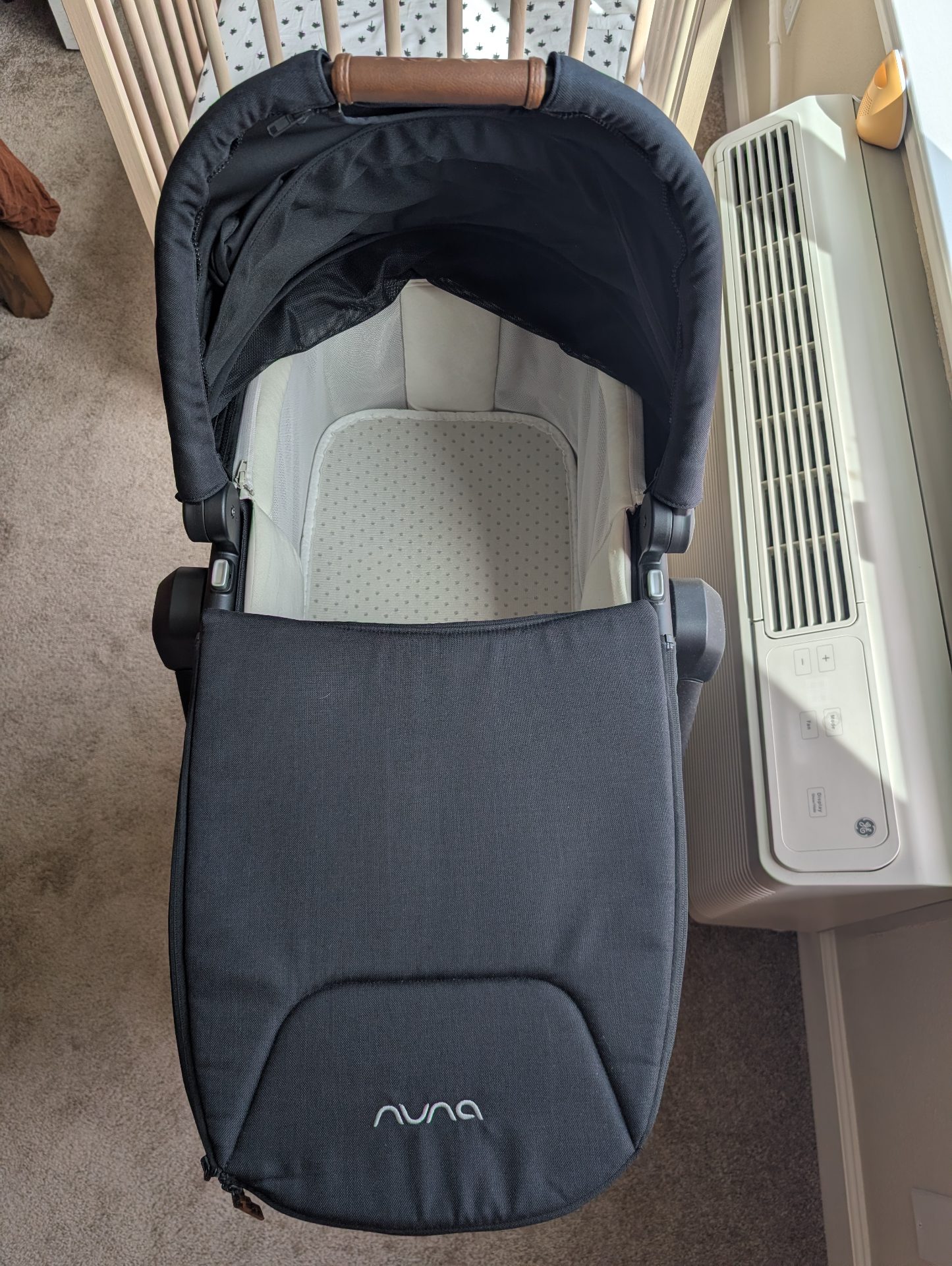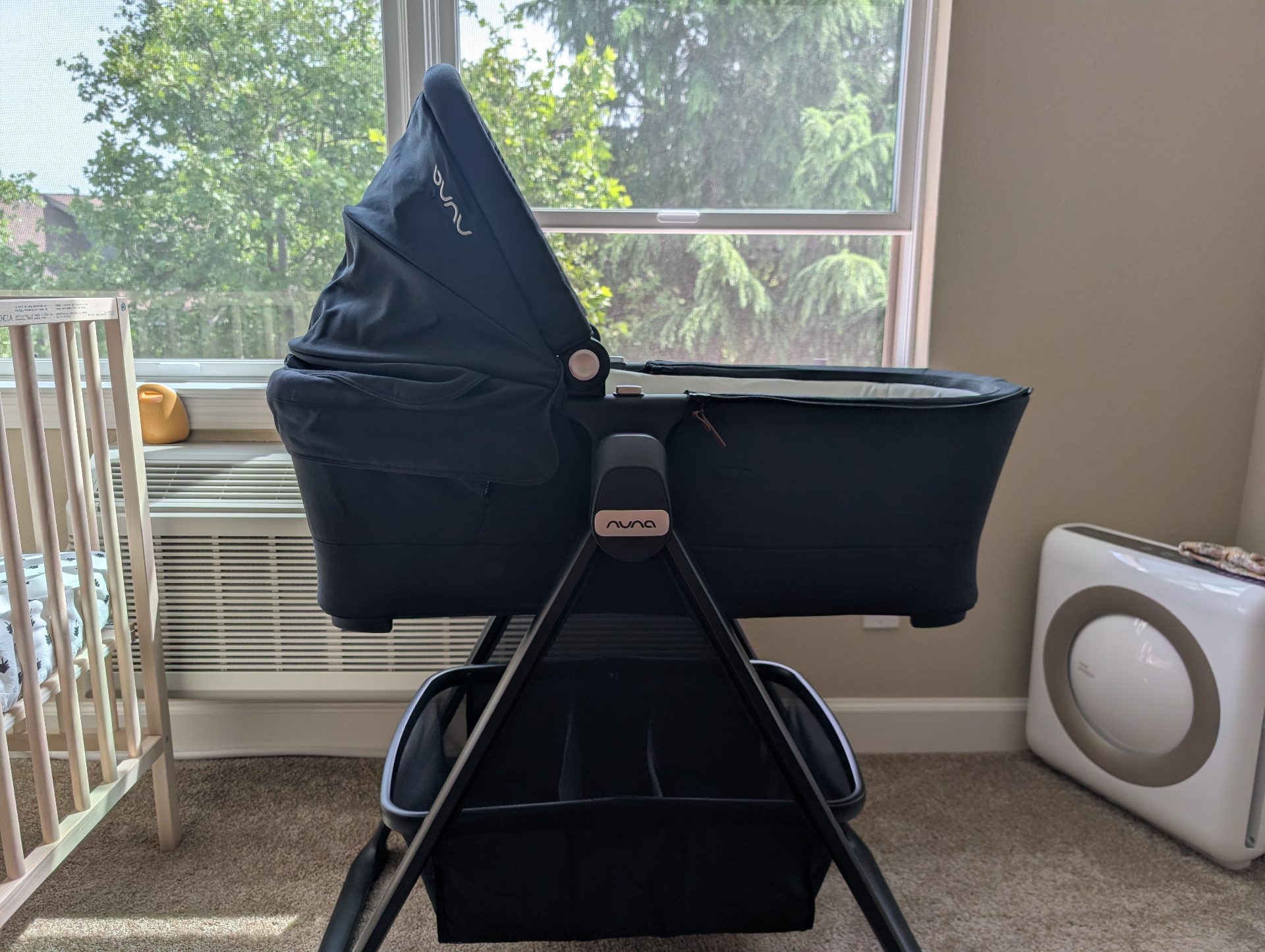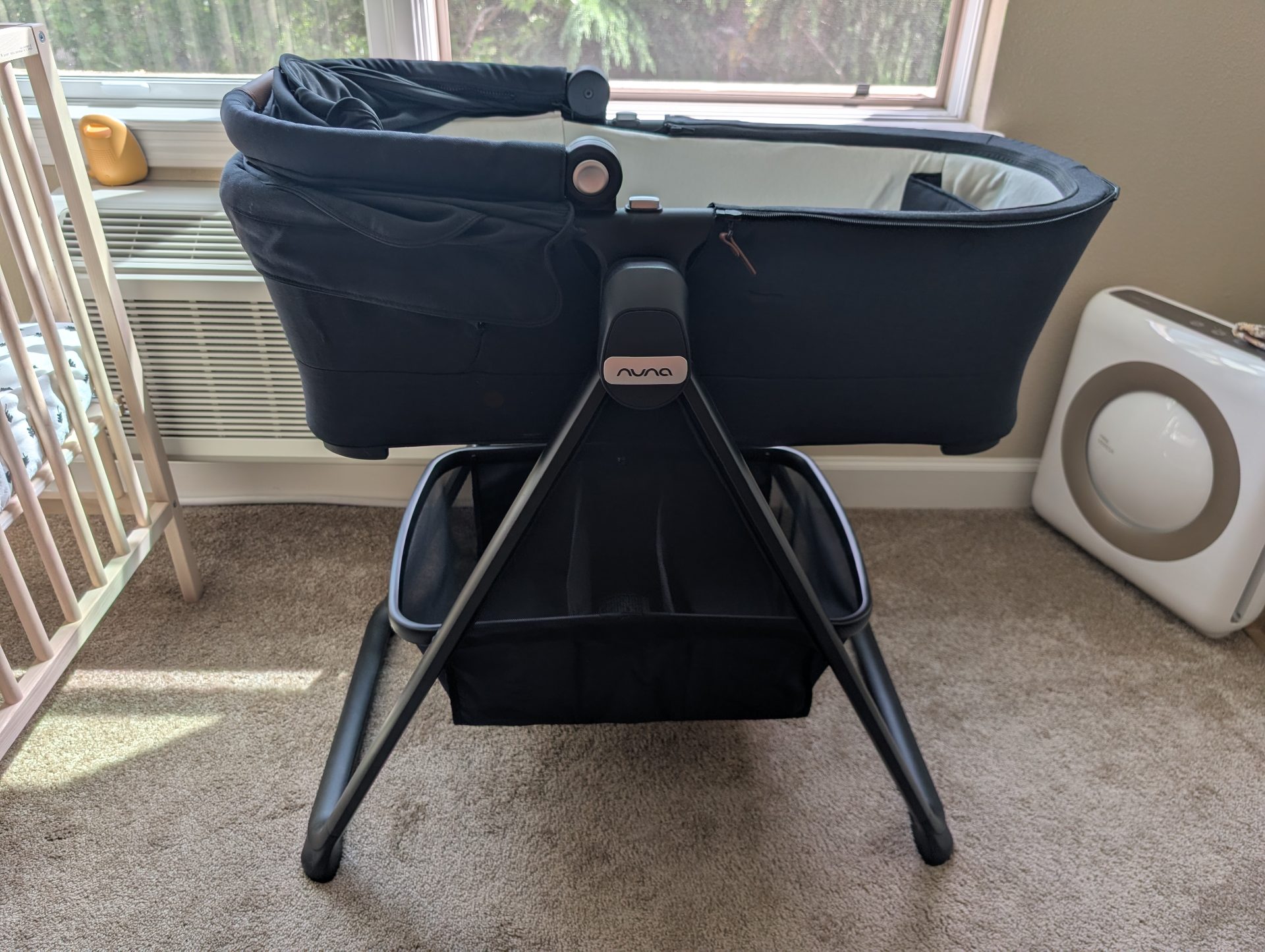 Like new, very minimal use (we used it as a second bassinet and for travel). Comes with all original accessories. Sells for $500 + tax (https://nunababy.com/usa/swiv-triv-series-bassinet-stand?color_ref=16366).
