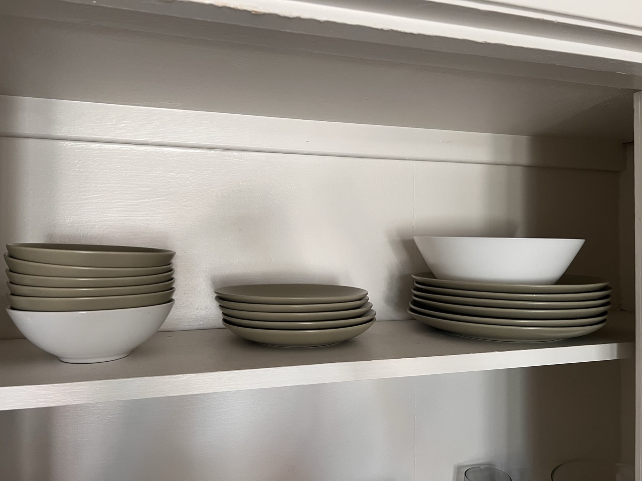 I am moving out soon and looking to pass along a set of 18 pieces from Ikea. The set consists of 6 bowls, 6 large plates, and 6 breakfast plates. White large bowl and white small bowl included.