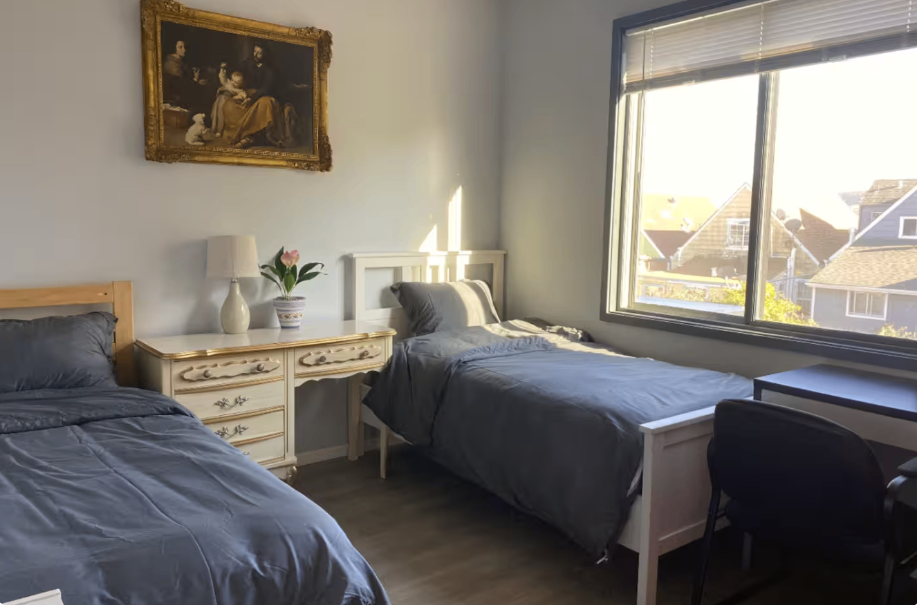 * One room has two twin beds, so if you’d like to share with a friend/partner, the rent would be $1,672/month per person for 5 people (including us 3) total