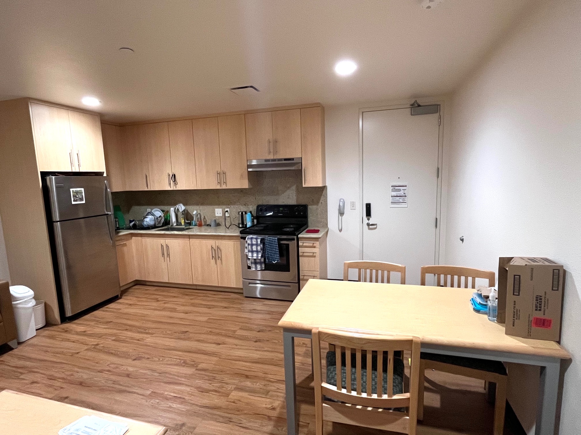 Info: Spacious fifth-floor bedroom, west-facing, mountain view. Perfect for watching California sunsets. Private bathroom; fully stocked kitchen and living room space. Photos attached. EVGR is a brand-new on-campus building in Stanford's graduate village with lots of amenities, including free in-building laundry, fitness centers and community rooms, as well as outdoor tennis and volleyball courts in the adjoining area. Details here: