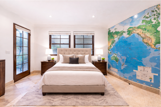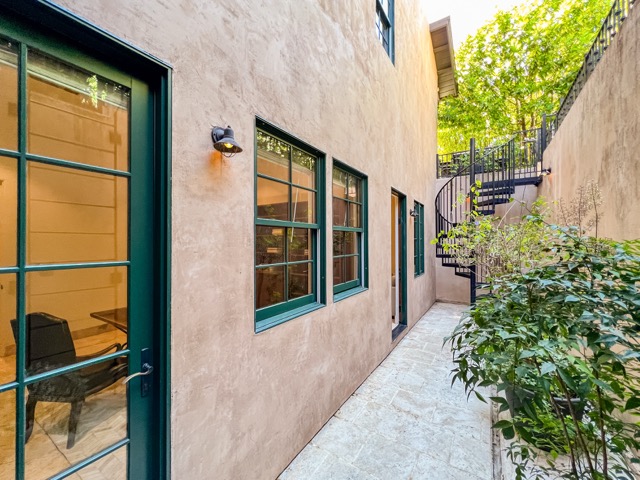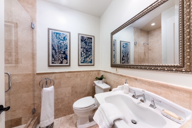 Descend a wrought iron spiral staircase to your private entrance. Step into your 240 sq ft. private room, tastefully appointed with a full/double bed, bed linens are provided. The room has travertine marble floors throughout, which are warm in the winter with radiant heat and cool in the summer. The room has plentiful drawer storage, tall walnut bookcases are lined with books, and there is a refrigerator and microwave. The immaculate and elegant bathroom has a stall shower, pedestal sink, and travertine marble throughout Bathroom linens are provided. Hardwired and wireless internet included. Housekeeping and laundry service!! No need to go to the laundromat, as the weekly housekeeping service includes laundering your clothing during the day and returning your clothing clean and folded the following day. Cleaning is provided every three weeks.