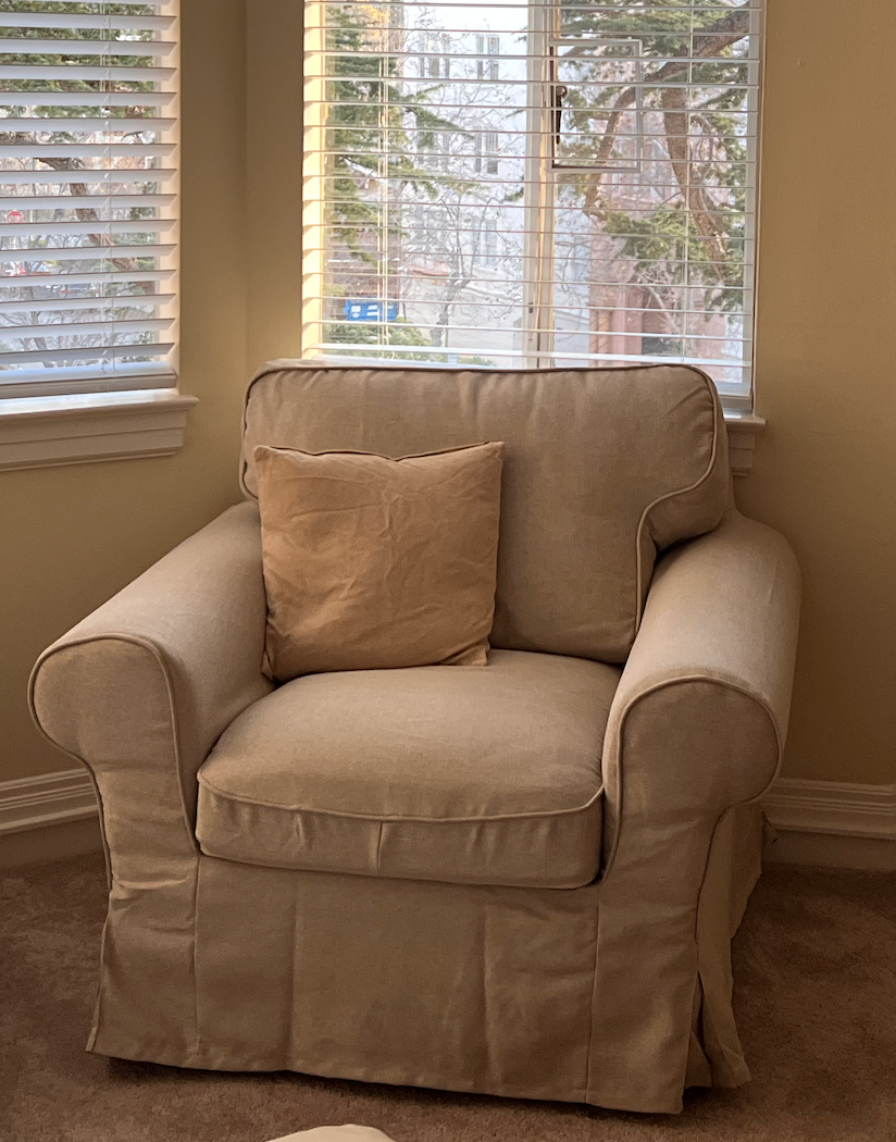 I am moving out in May and looking to pass along this cozy large IKEA armchair in beige color. It is comfortable, without any stains or textile damages, used for less than 9 months. There are no pets and it is a non-smoking studio. Details and measures on the site: https://www.ikea.com/us/en/p/uppland-armchair-kilanda-light-beige-s79553842/#content