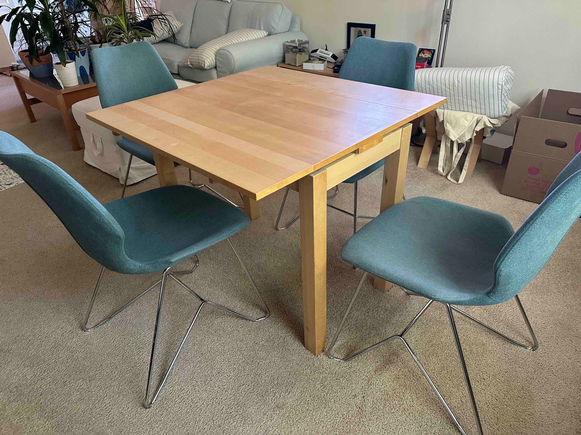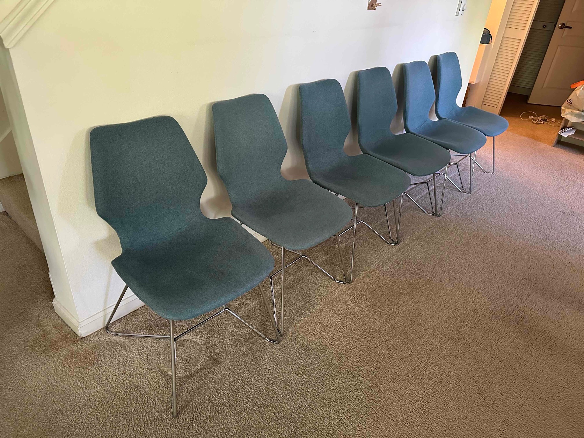 Selling a set of 6 modern upholstered chairs - comfortable, sturdy, and ready to use.