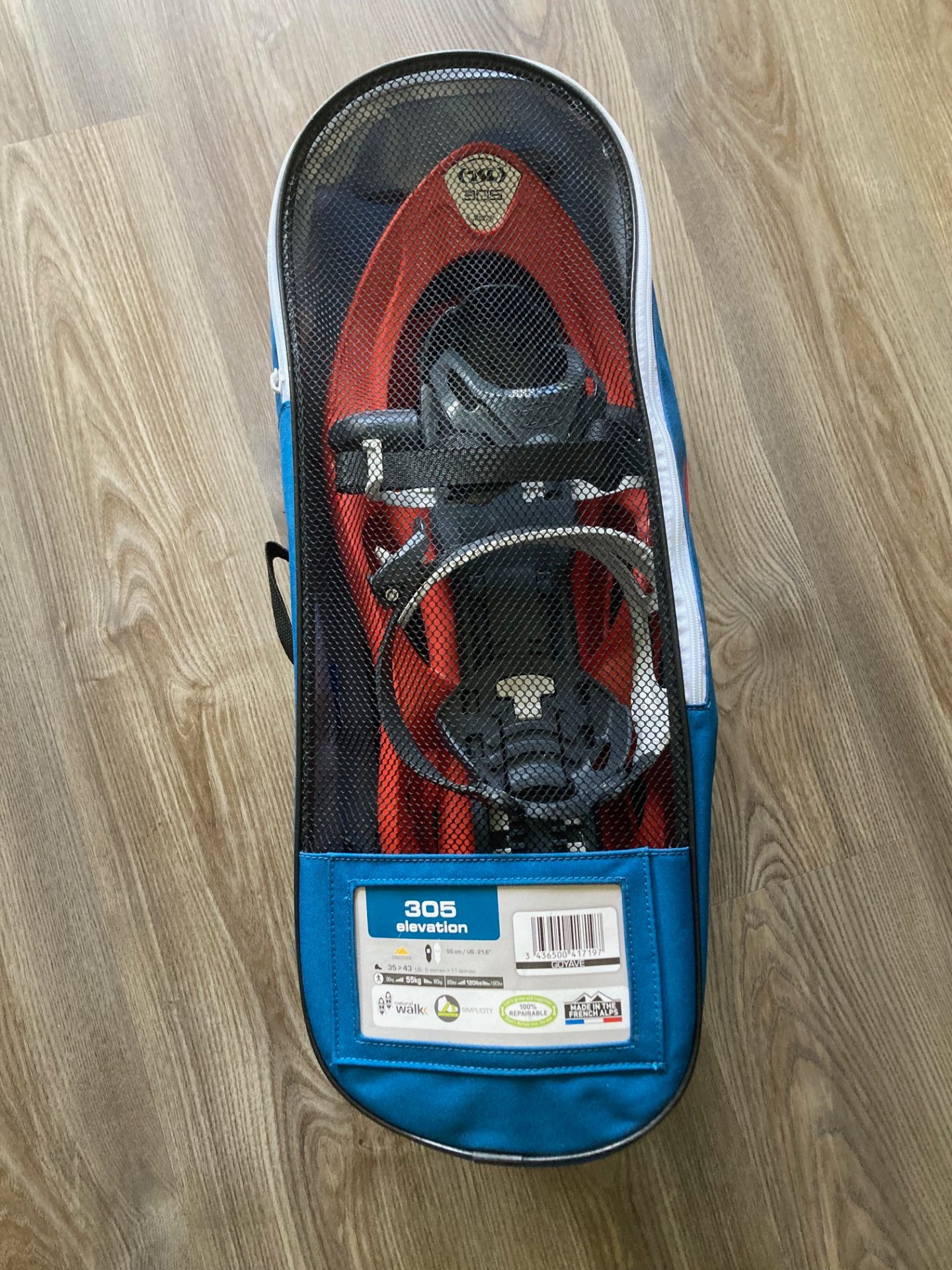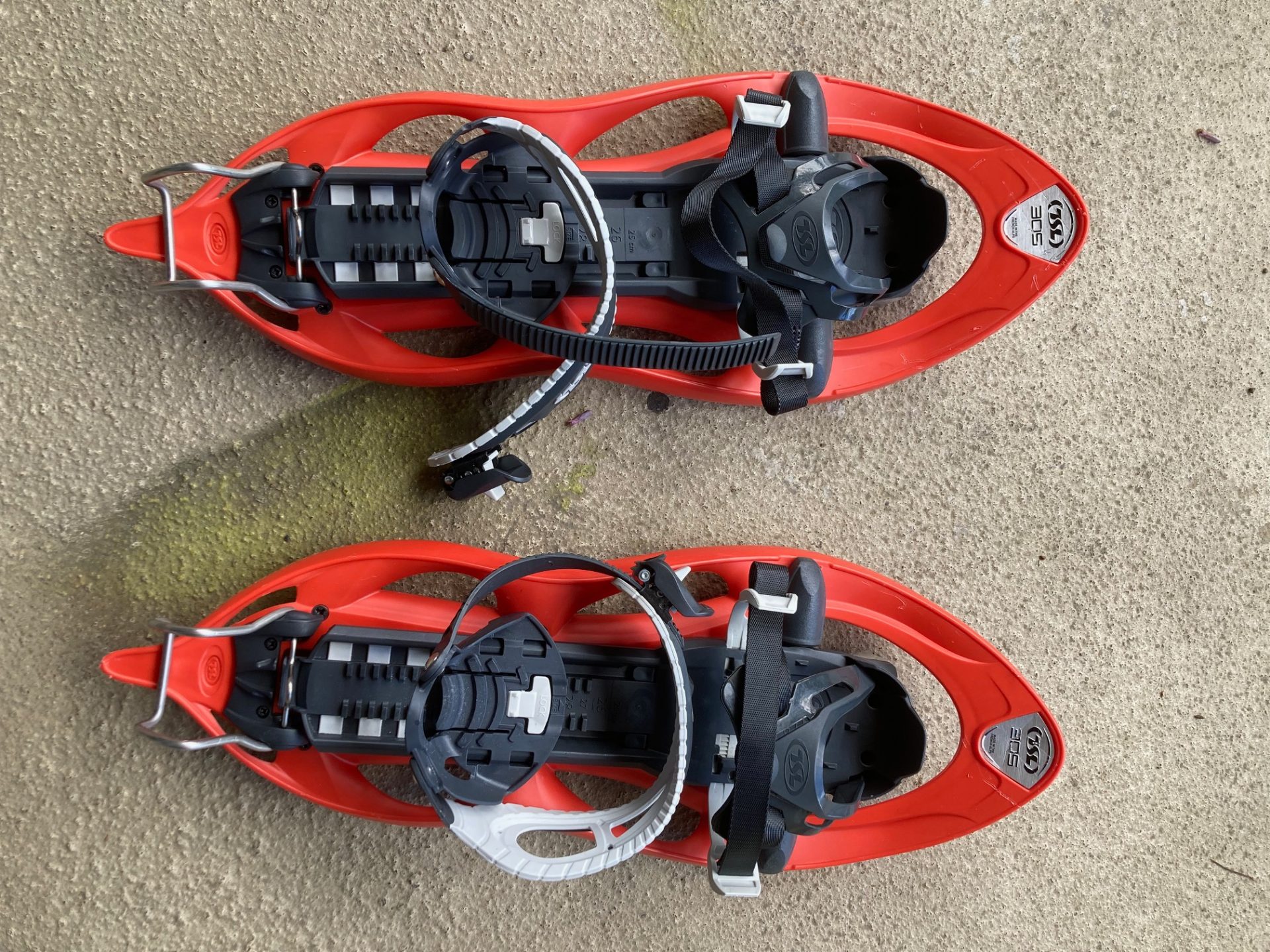 Snowshoes TSL 305 Elevation Goyave, made in France. Size 55cm/21.6” (small, better for women). Used but in good condition. Binding system very easy to use.