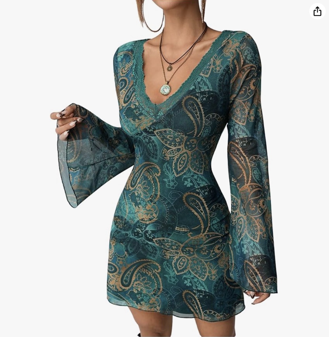 Mini green boho dress (Size XS: https://www.amazon.com/dp/B0G2LT5HWK?ref=ppx_yo2ov_dt_b_fed_asin_title&th=1&psc=1): $16