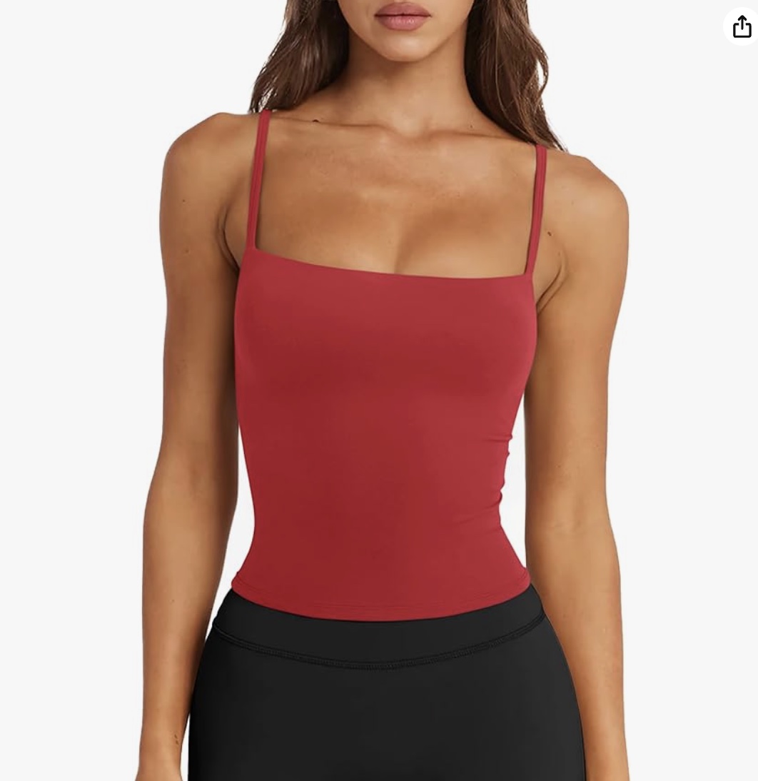 Red top with built-in sports bra (Size M: $12 https://www.amazon.com/dp/B0G7HVBWYL?): $12