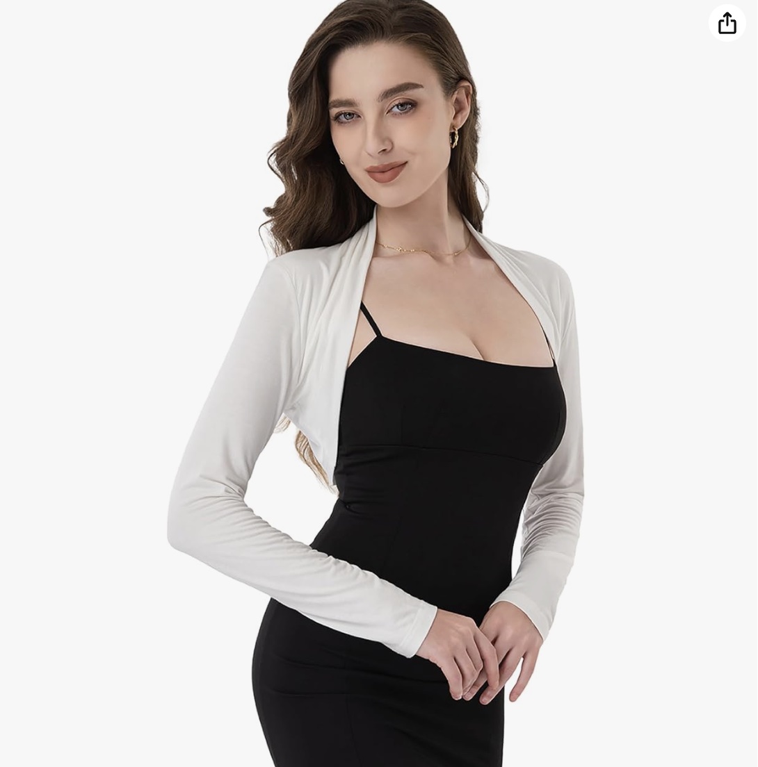 White bolero (Size S: https://www.amazon.com/dp/B0FGD13NC8?ref=ppx_yo2ov_dt_b_fed_asin_title&th=1&psc=1): $10
