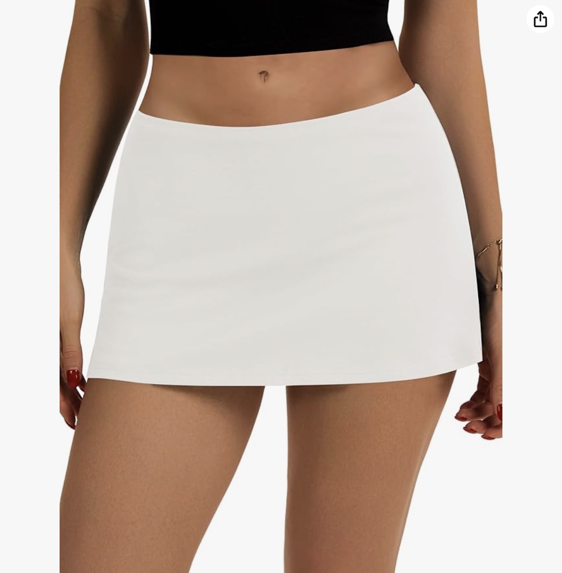 Low-waist white mini skirt with built-in shorts (Size XS: https://www.amazon.com/dp/B0FHGV77ZV?): $10