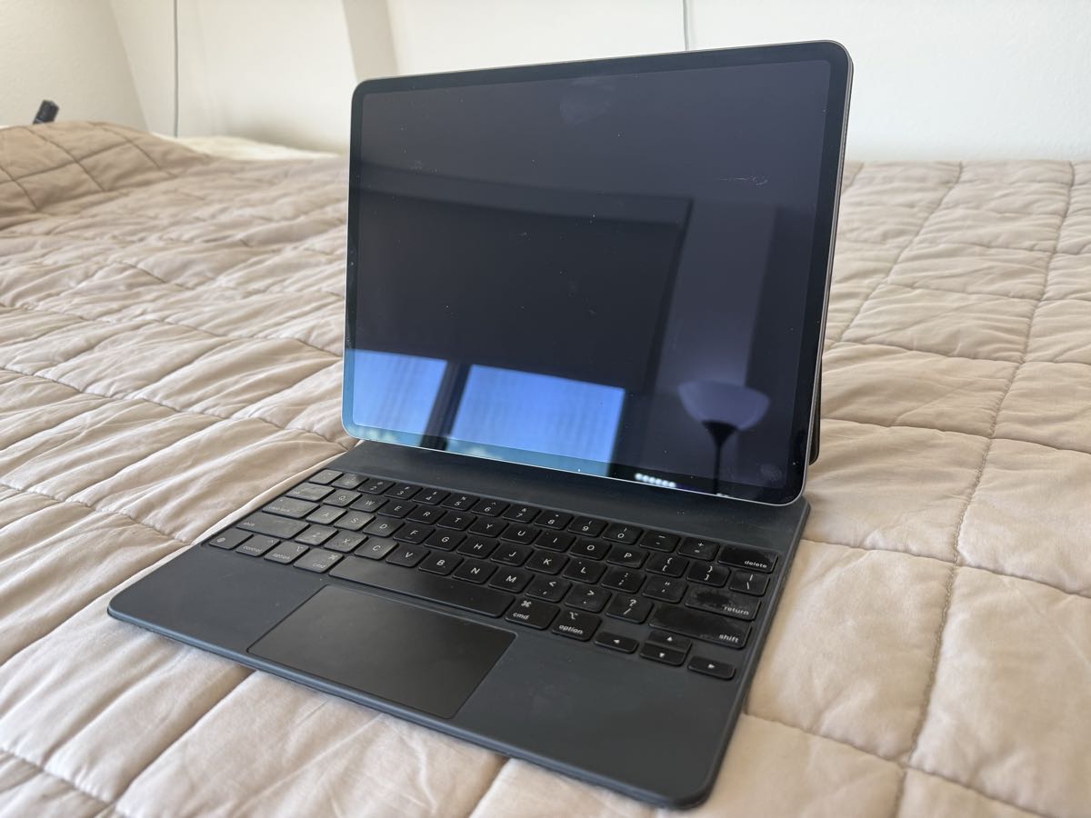 Selling my iPad Pro 12.9 inch 4th gen with the matching Magic Keyboard. This is the bigger-screen iPad that actually replaces a laptop for a lot of people, and the Magic Keyboard is the floating-cantilever one with the built-in trackpad that makes it actually feel like a laptop.