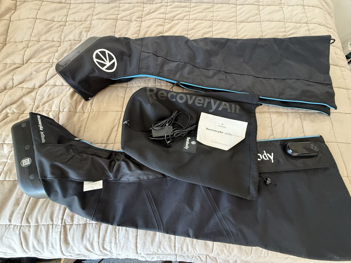 Selling my Therabody JetBoots, the wireless pneumatic compression boots from Therabody (the Theragun company). These are the version that does what NormaTec boots do but without being tethered to a giant external pump, fully self-contained, foldable, take them on the road.