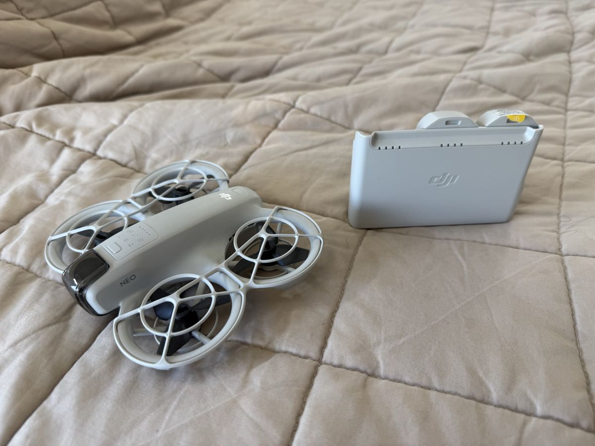 Selling my DJI Neo with 3 batteries and the multi-battery charging hub. The tiny palm-launch follow drone from DJI, 4K video, ~135g (so no FAA registration required), shoots way better video than its size suggests, and you can fly it directly from your phone or with palm gestures (no controller required for casual use).